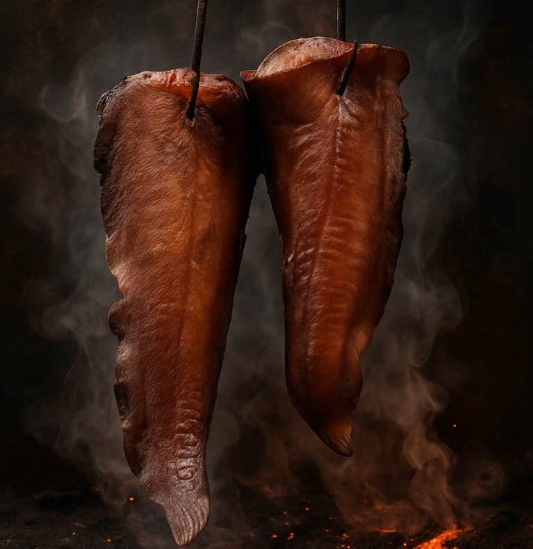 Każda ryba jest solona ręcznie i odpoczywa przez 24 godziny, zanim trafi do wędzarni. Wędzenie trwa od 10 do 12 godzin w niskiej temperaturze, co pozwala zachować naturalny smak i soczystość mięsa.